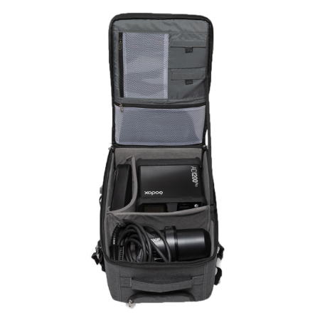 La Godox CB20 es una mochila profesional diseñada para transportar equipos de iluminación portátiles, especialmente modelos como el AD300Pro y AD400Pro, junto con sus accesorios. Su interior totalmente acolchado y configurable permite organizar el equipo de manera segura, evitando golpes y roces durante el traslado. Fabricada con materiales resistentes y un diseño ergonómico, ofrece protección, comodidad y amplio espacio para fotógrafos que trabajan en exteriores o requieren movilidad constante.