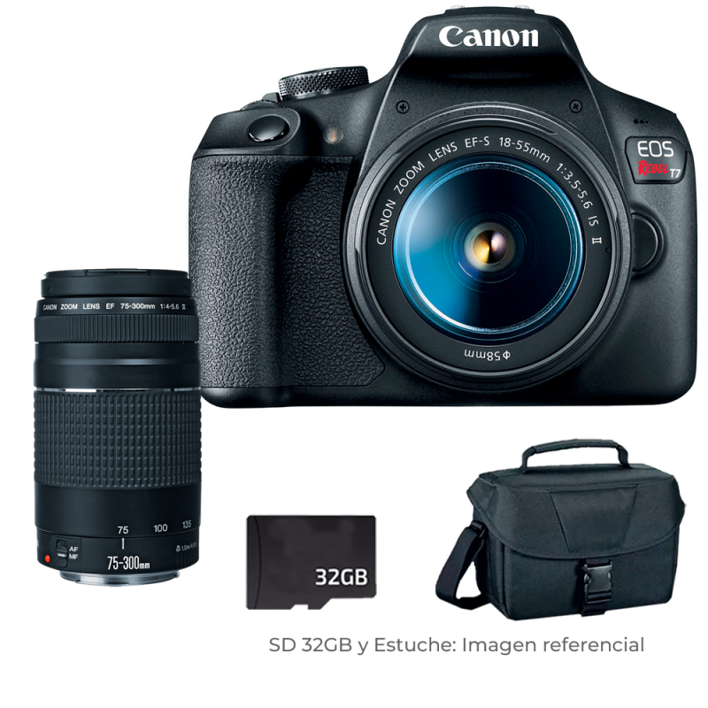 Canon EOS Rebel T7 DSLR 18-55mm IS + Lente 75-300mm + Estuche +SD 32gb