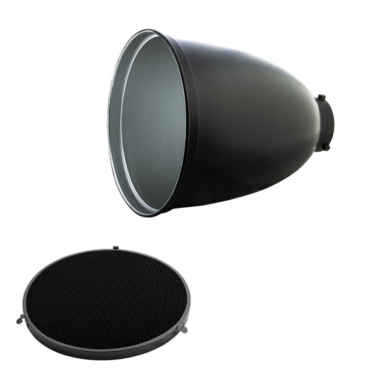 Incluye reflector de enfoque profundo con rejillas de panal.