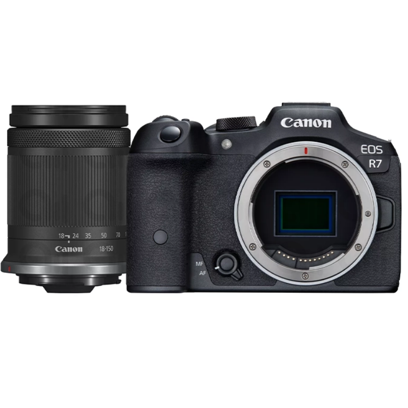 La Canon EOS R7 con el lente RF-S 18-150 mm IS STM es una cámara sin espejo con sensor APS-C de 32,5 megapíxeles, diseñada para creadores que buscan una herramienta versátil para fotografía y video. Combina rendimiento, velocidad, enfoque inteligente y estabilización óptica, todo dentro de un cuerpo compacto que permite capturar escenas de acción, retratos y contenido audiovisual de calidad profesional.