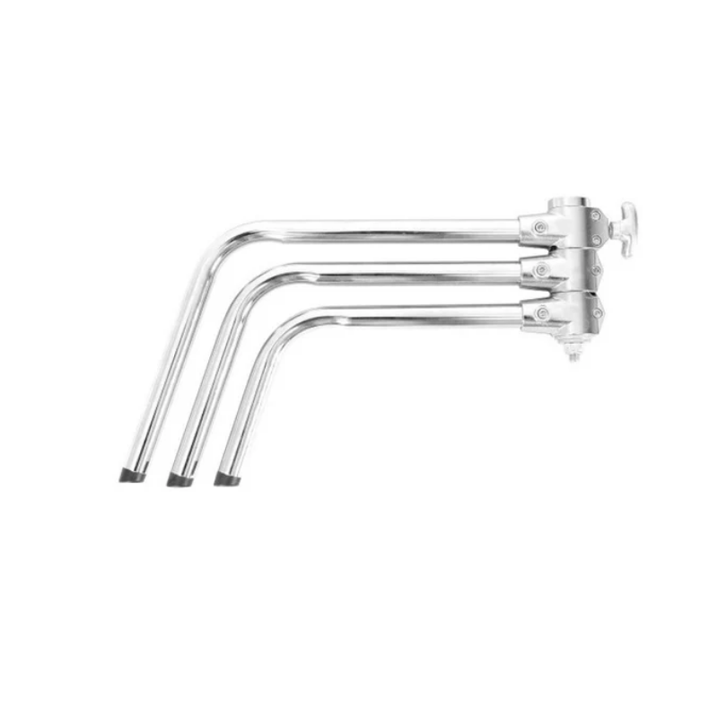 El Godox C270S es un C-Stand profesional diseñado para soportar luces de estudio, modificadores y accesorios pesados con total estabilidad. Fabricado en acero inoxidable, ofrece una estructura sólida y duradera capaz de resistir un uso intensivo en producciones fotográficas y audiovisuales. Su diseño con base tipo tortuga desmontable facilita el transporte y almacenamiento, mientras que las tres secciones ajustables permiten alcanzar diferentes alturas según la necesidad del set.