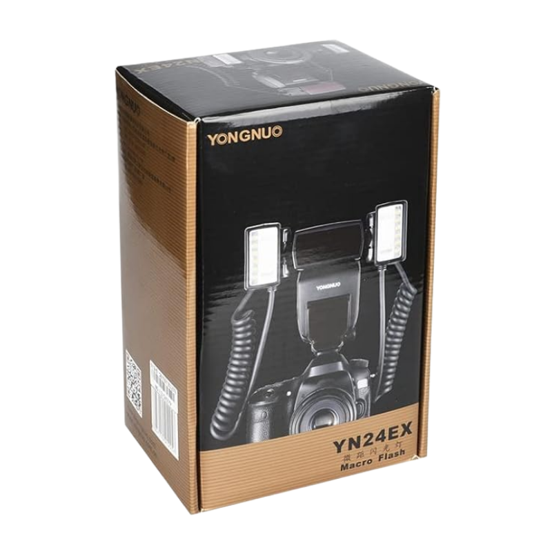 El YONGNUO YN-24EX es un flash macro avanzado que ofrece control total sobre la iluminación de primeros planos. A diferencia de un flash anular, sus dos cabezales se montan al frente del objetivo y pueden girarse y separarse, permitiendo modelar las sombras y resaltar texturas con precisión.