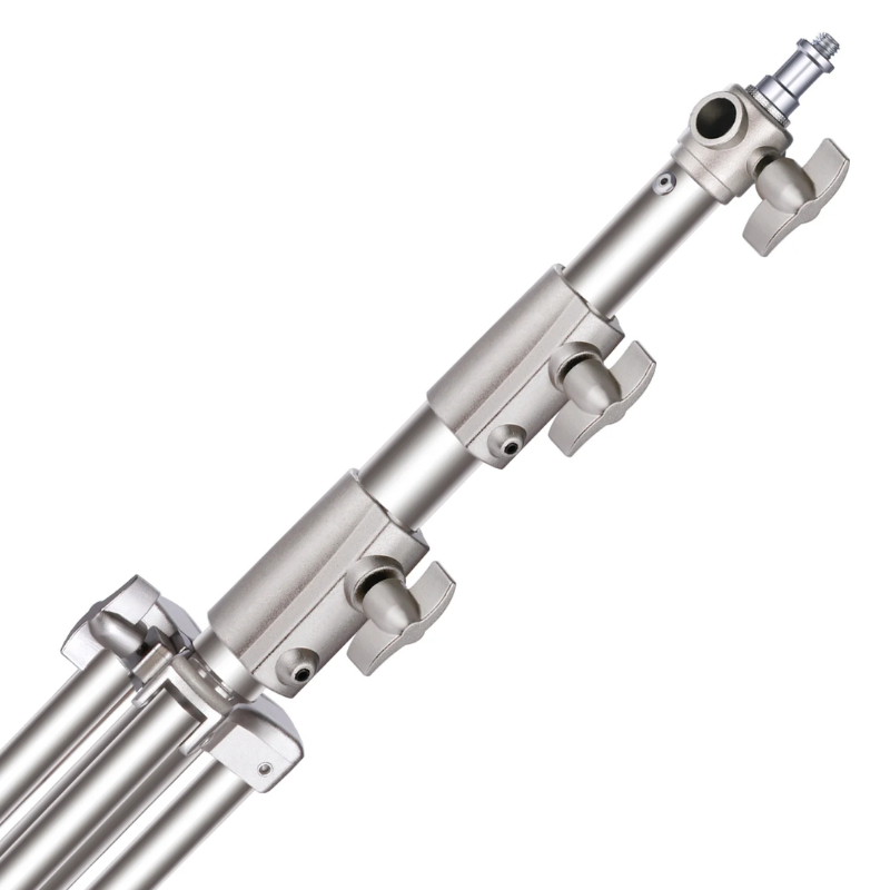 Soporte de iluminación robusto construido en acero, diseñado para brindar máxima estabilidad en equipos pesados. Ideal para luces, modificadores o accesorios grandes. Su altura ajustable y sistema de bloqueo reforzado garantizan seguridad y durabilidad incluso en sesiones intensas.