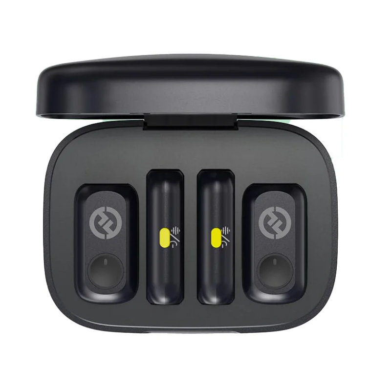 El Hollyland LARK A1 Combo es un sistema de micrófonos inalámbricos ultracompacto y ligero, diseñado para grabar audio profesional de dos personas en cámaras, smartphones o tablets.