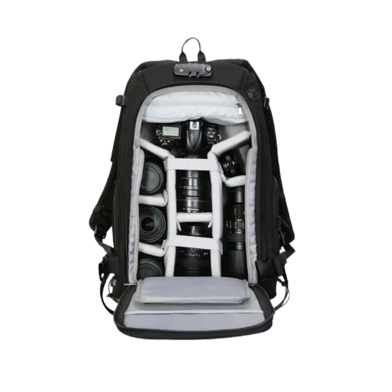 Capacidad: 1 cámara DSLR o mirrorless, 2–3 lentes, flash y accesorios