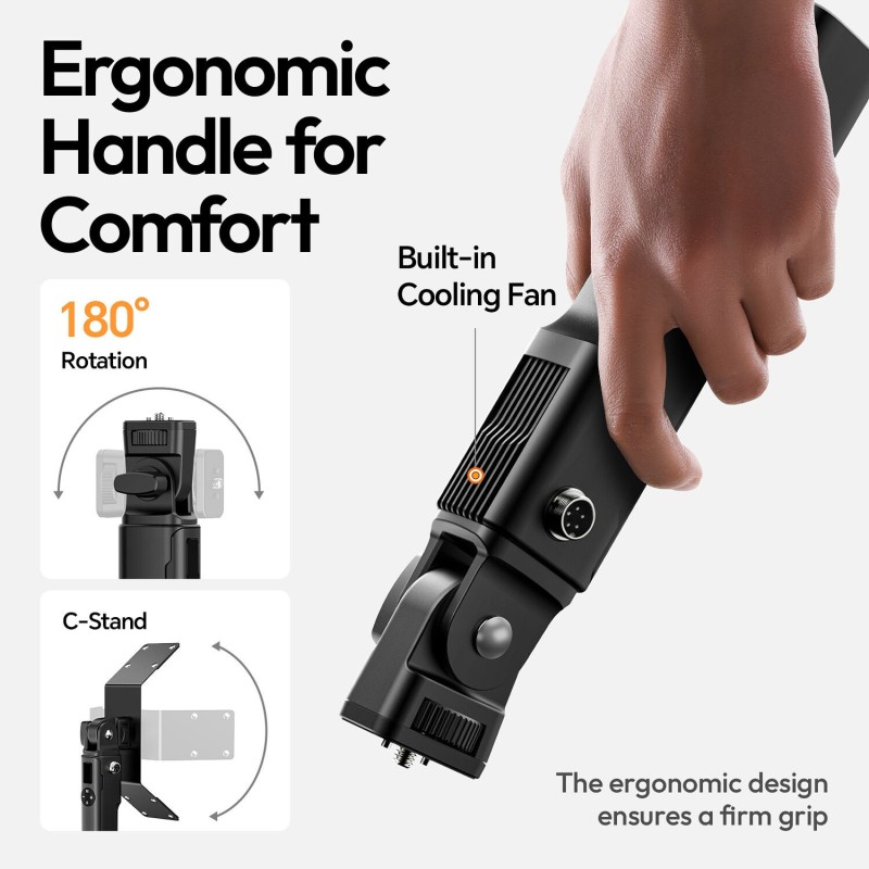 【Iluminación portátil】La luz de estudio Ulanzi está especialmente diseñada para configuraciones de iluminación flexibles. Móntela en un soporte para lograr un efecto de iluminación estable y profesional, cuélguela para crear un ambiente único o sujétela con la mano para encontrar el ángulo de disparo perfecto sin esfuerzo. El mango ergonómico garantiza un agarre seguro y sin fatiga para un uso prolongado. Esta luz LED bicolor para video es ideal para diversas escenas de grabación en interiores y exteriores. Es la luz esencial para dar vida a tus visiones creativas.