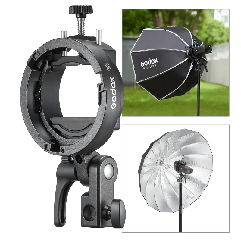 Gracias a su construcción resistente y su diseño compacto, el Godox S3 Bracket es una herramienta muy utilizada en estudios fotográficos, sesiones en exteriores y producciones audiovisuales.